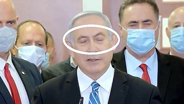 נתניהו ממצמץ כשהוא מדבר על הרחקת מחנה הימין מההנהגה ( )